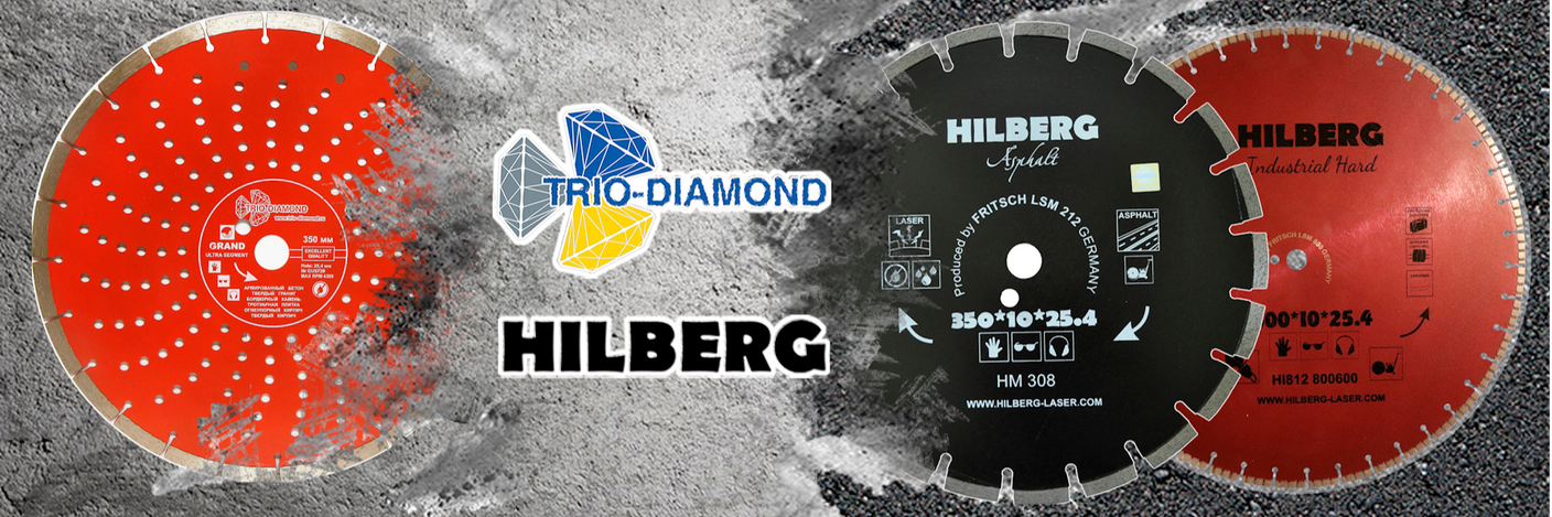 Алмазные диски Трио Диамант выпускаются в трех ценовых сегментах - диски для бытового применения, диски полупрофессионального назначения и диски HILBERG произведенные методом лазерной сварки для профессионального использования. Для сверления и шлифовки выпускаются алмазные коронки по бетону и железобетону, алмазные чашки и гибкие шлифовальные круги. К отдельной категории относятся пильные диски по дереву, ламинату, металлу, алюминию, фиброцементу и универсальные диски.