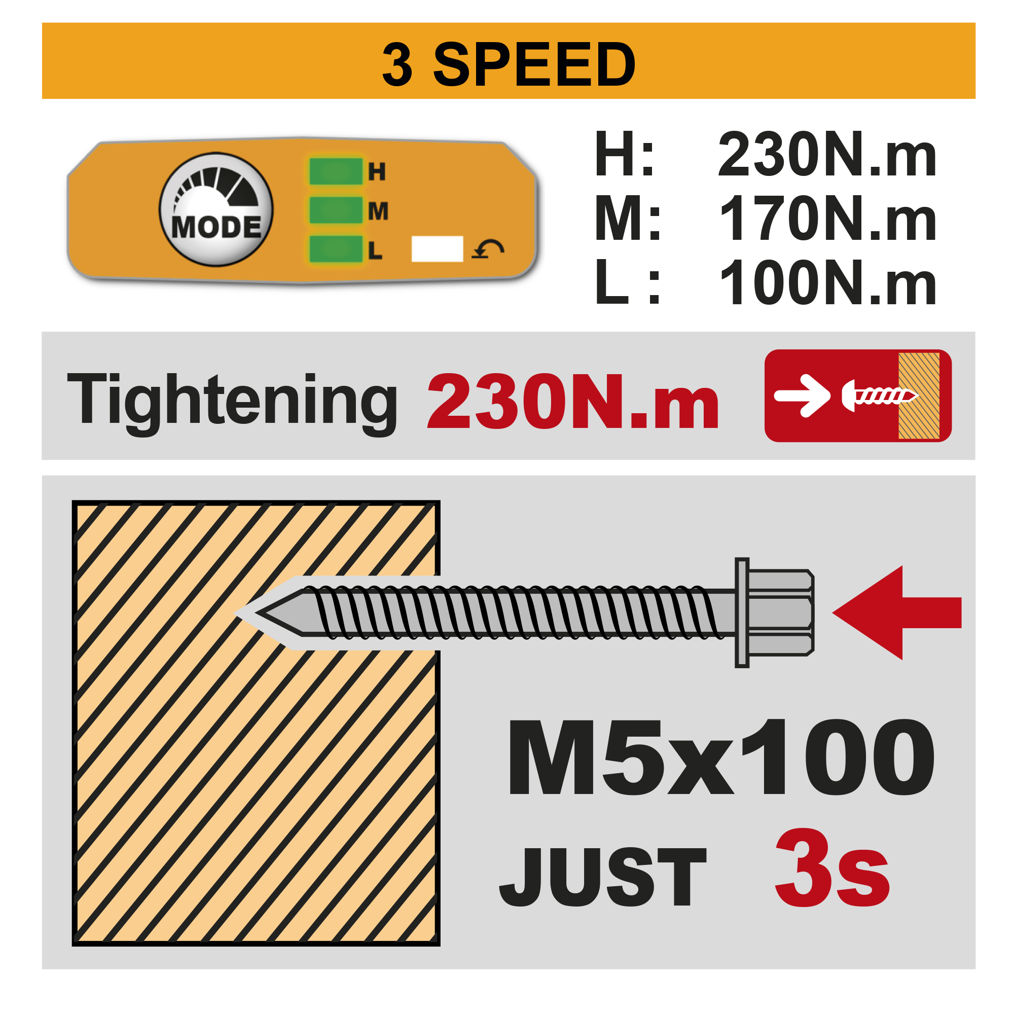 - Система Auto Bolt Release (ABR) автоматически останавливает инструмент когда саморез или болт полностью откручен,