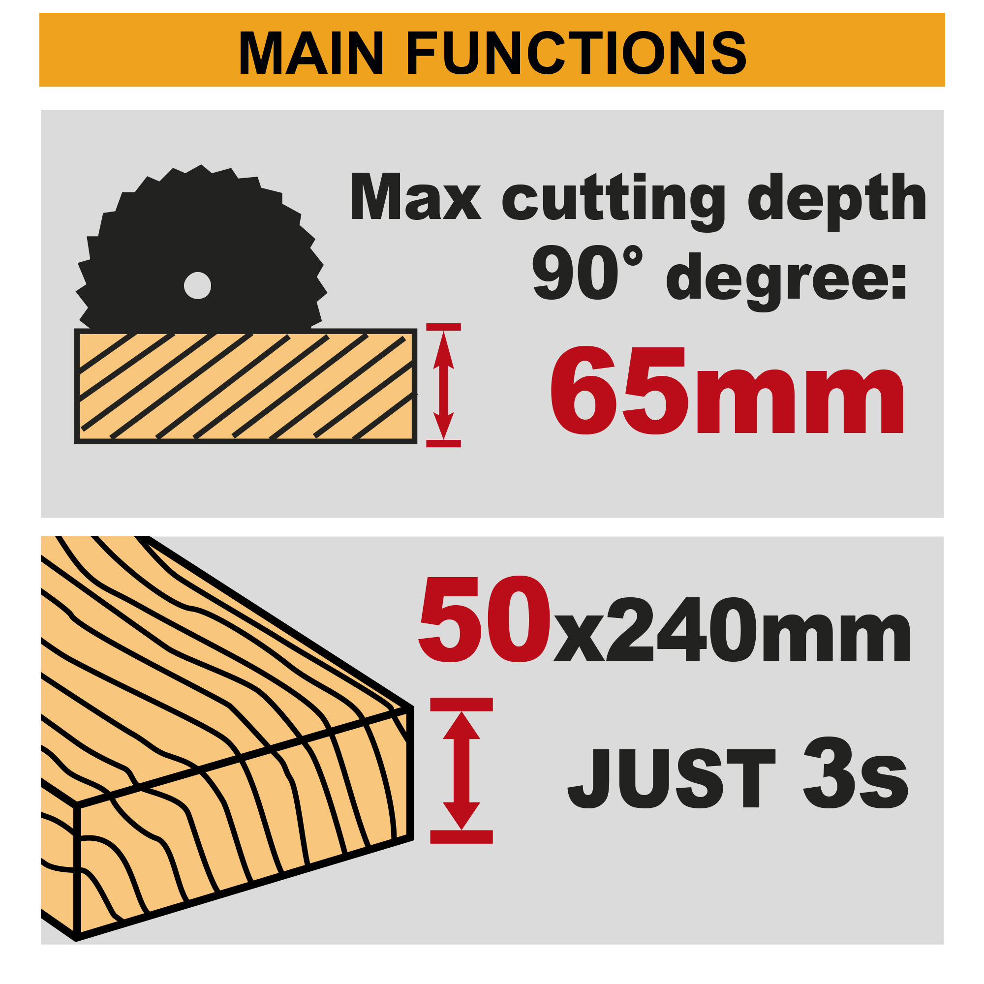 - Наличие регулировки угла (0-45°) и глубины пропила до 65 мм.