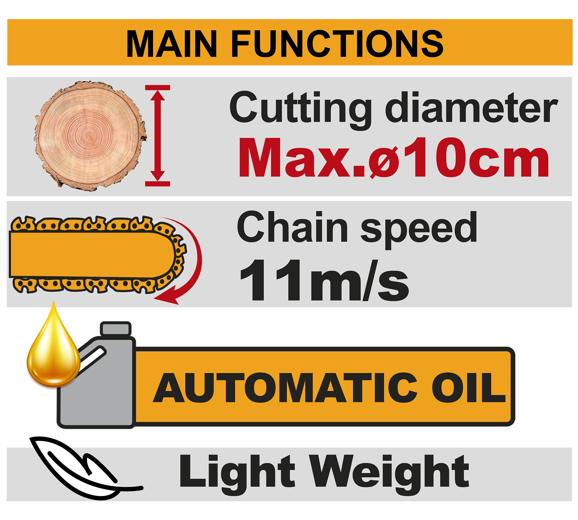 - Тип инструмента: Цепная аккумуляторная мини пила