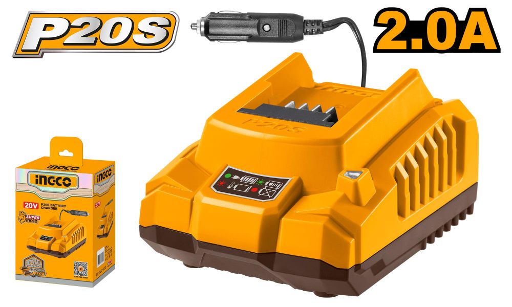 Зарядное устройство получает питание от вашего автомобиля через прикуриватель, то есть заряжает аккумуляторы от розетки автомобиля, подходит для всех аккумуляторных инструментов линейки P20S INGCO.